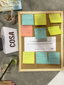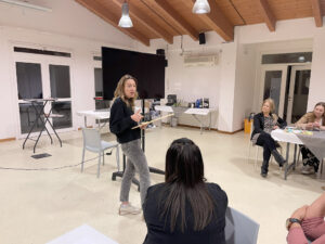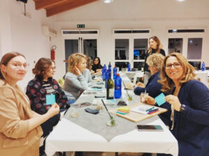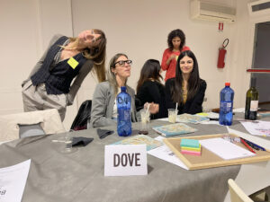 After dinner, an interactive workshop was held under the guidance of Corinna Crippa. The participants engaged in a round table discussion on gender stereotypes in advertising spots. Through a moment of comparison and reasoning on the words, they explored the subliminal messages of the commercials, bringing out their own points of view: it was a truly interesting moment, a real starting point to open a collective reflection on gender stereotypes, on work and outside.
